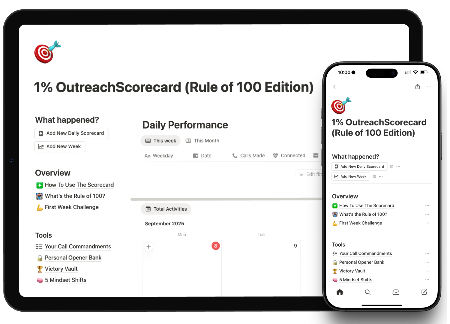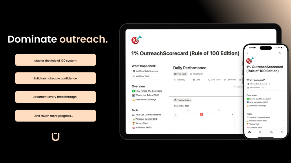 With its intuitive and performance-focused design, 1% OutreachScorecard is a complete system designed to transform random activity into strategic outreach mastery.